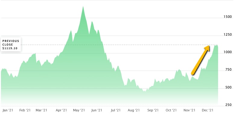Lumber Prices: Commodity price inflation seems to have cooled off for the time being with the exception of lumber prices which exploded to the upside in November, up 45% month over month and up 3X from their 2020 lows. I do not know enough about the lumber market to forecast future lumber prices but I want to report what happens with lumber as rising construction costs have an impact on future existing home prices.