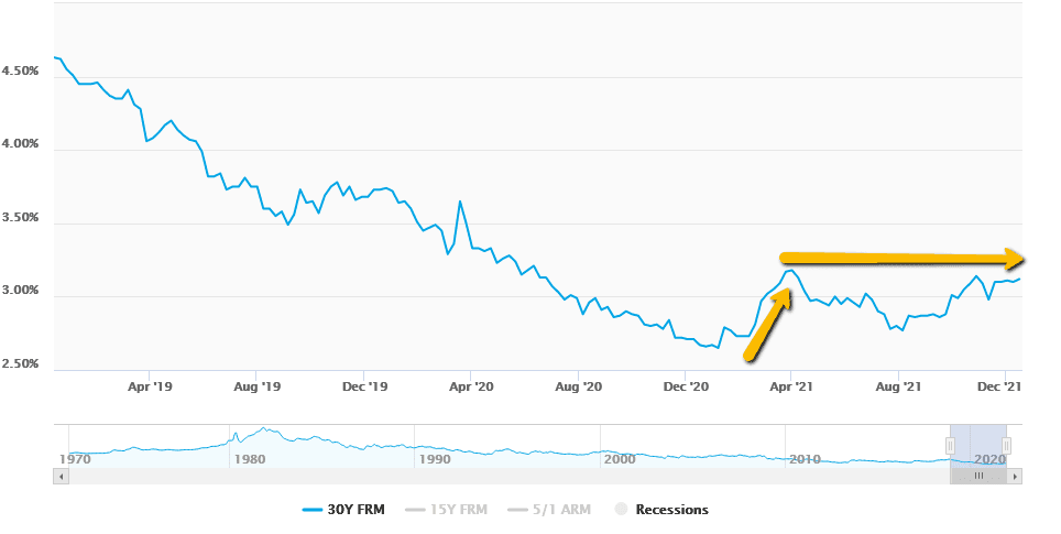 Mortgage Rates: Mortgage rates are flat month over month at 3.12% for the average 30-year fixed conventional mortgage in the U.S. which is up about 17% from the record low rates of last December.