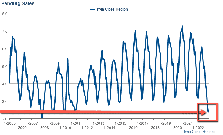 Pending home sales in the Twin Cities just fell to their lowest level since December of 2007, as rising interest rates in the face of declining corporate profits continue to promote wealth destruction and housing demand destruction across U.S. markets.