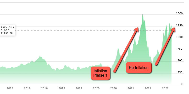 Lumber Prices: The re-inflation of lumber prices continued in February as lumber jumped 30% MOM to $1,223, more than triple 2019 price levels.