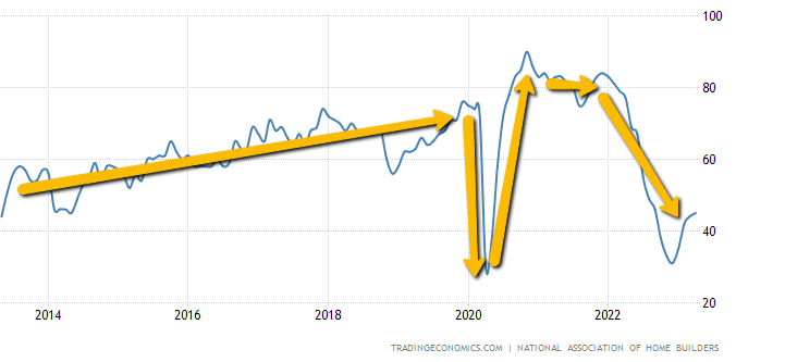 Home Builder Confidence: “The NAHB/Wells Fargo Housing Market Index in the United States rose by 5 points to 50 in May 2023, easily beating market consensus of 45. This marks the fifth consecutive month of growth and the highest level since July of the previous year, due to strong demand for new construction driven by limited housing supply. However, builders are still facing challenges in meeting this demand due to shortages of building materials like transformers, as well as tightening credit conditions for residential real estate development and construction, influenced by the Federal Reserve's interest rates hikes. The gauge for current single-family home sales was up 5 points to 56, while the home sales over next six months sub-index increased 7 points to 57. In addition, the gauge for prospective buyers rose 2 points to 33.” -National Association of Home Builders